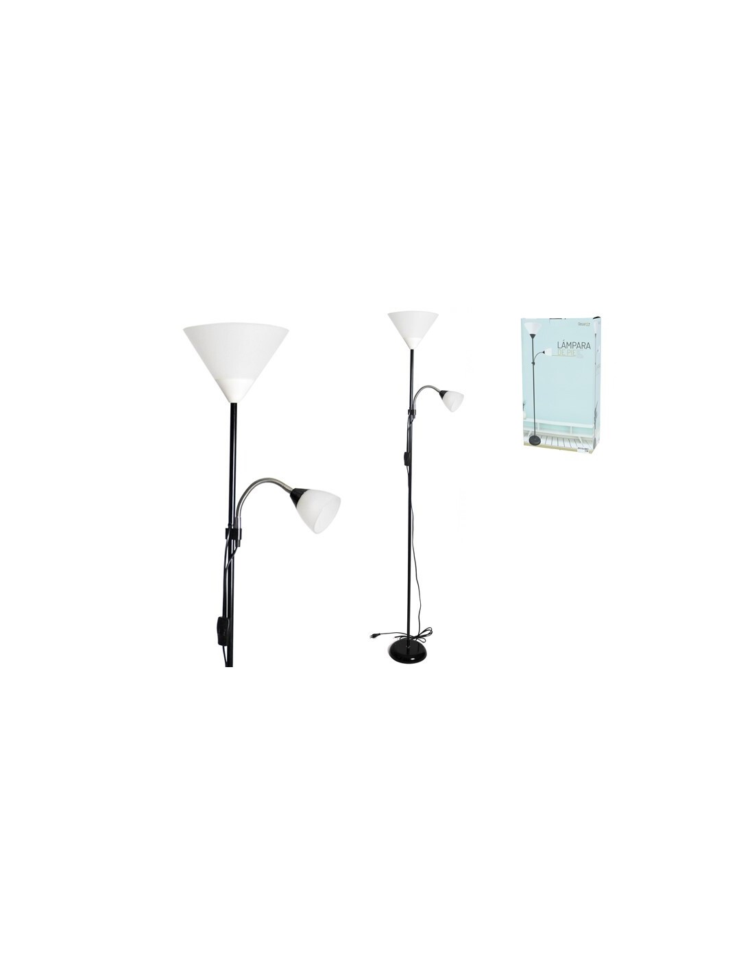 LAMPARA PIE 2 BRAZOS 1.8M NEGRA