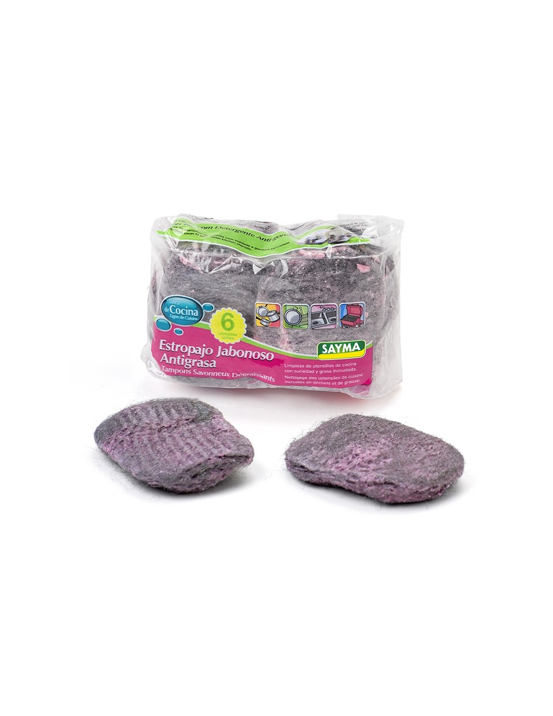 ESTROPAJOS JABONOSOS SET6 ANTIGRASA 6X6X1.5CM