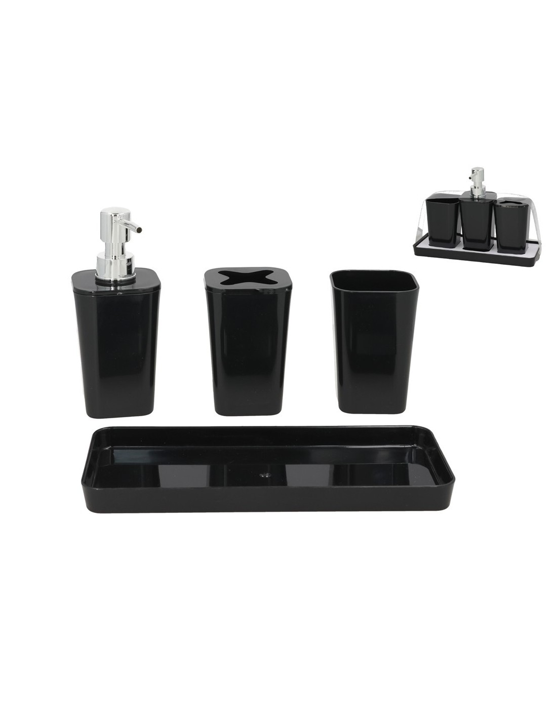 SET 4 ACCESORIOS BAÑO 7X7X11CM NEGRO