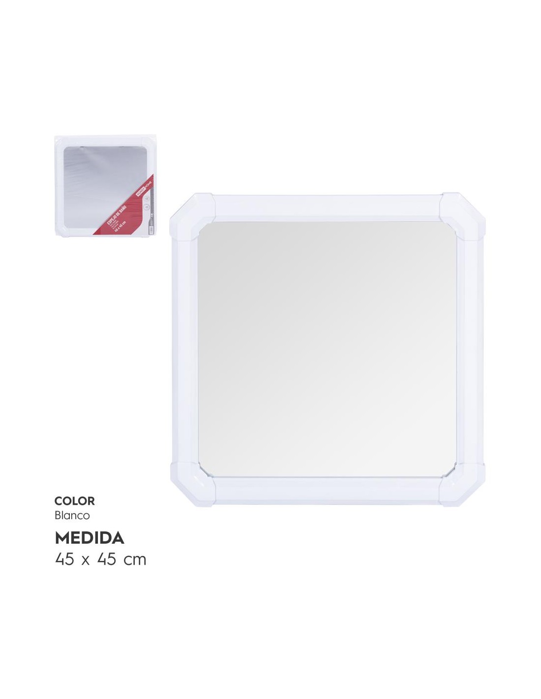 ESPEJO BAÑO 45x45 CM BLANCO B/CORCHO