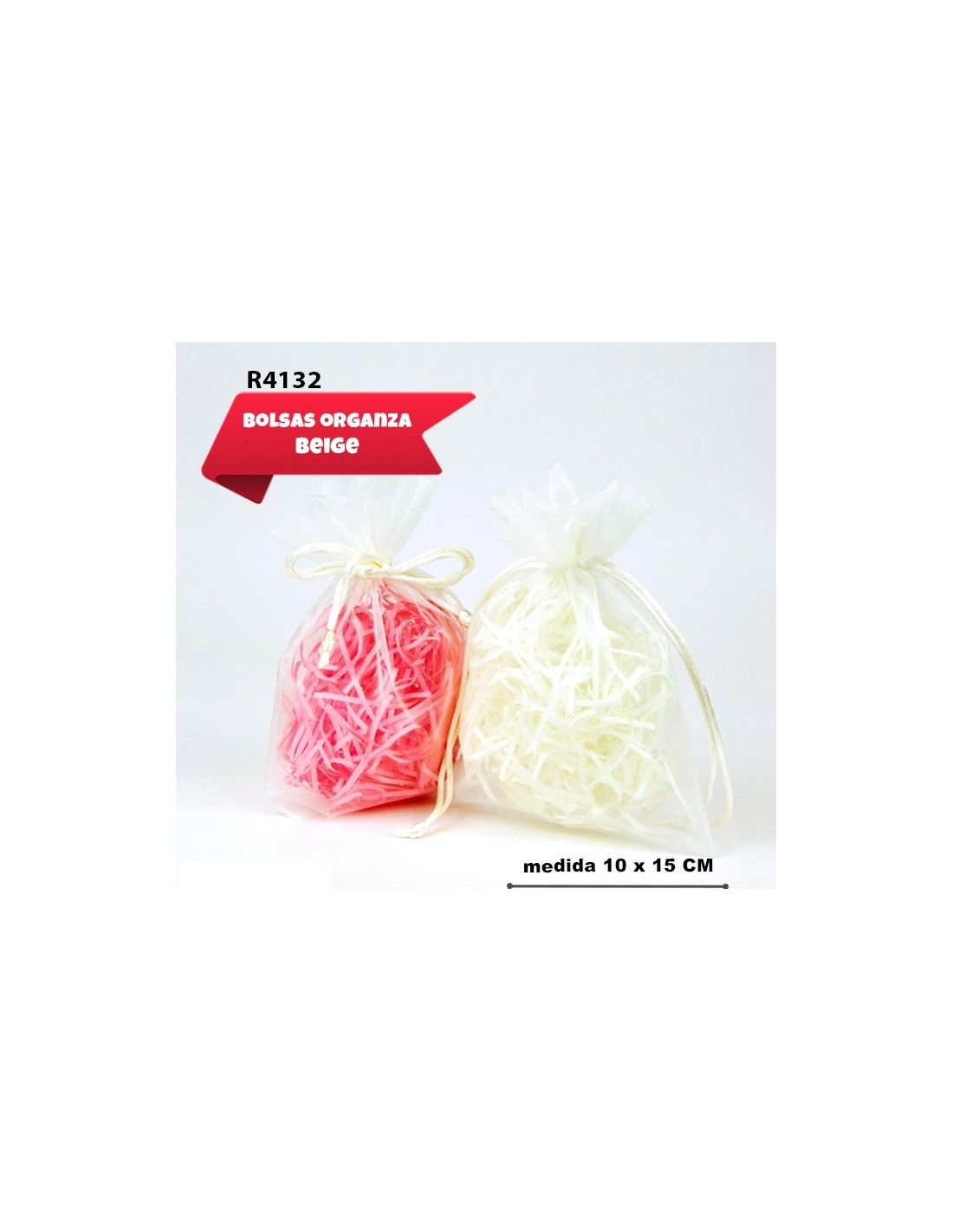 BOLSA DE ORGANZA 10 X15CM BEIGE 4UD