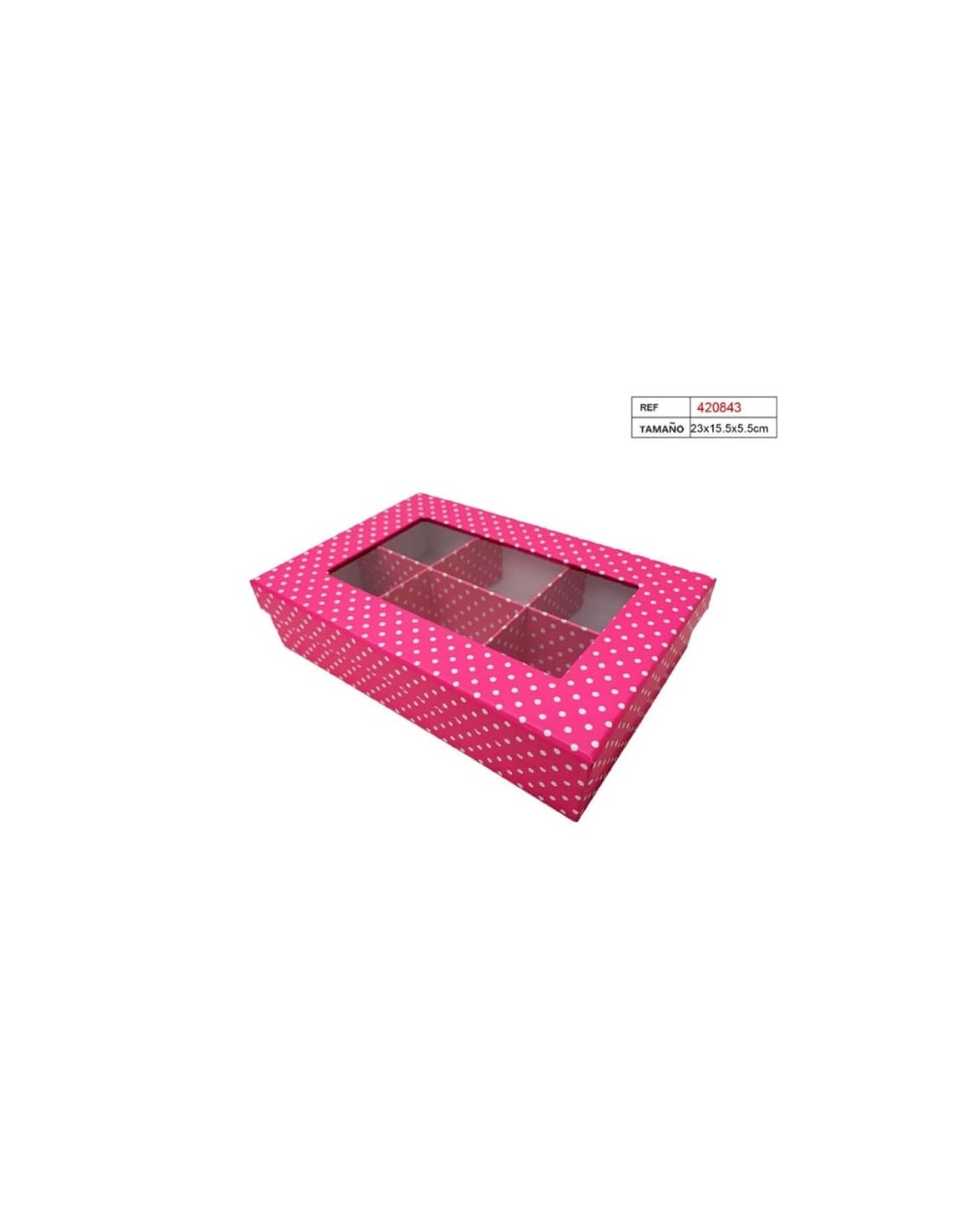 CAJA C/6 ESPACIOS 23X15.5X5.5 LUNARES ROSA