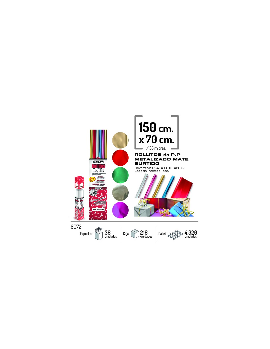 ROLLO P.P METALIZADO MATE 150X70CM SURTIDO