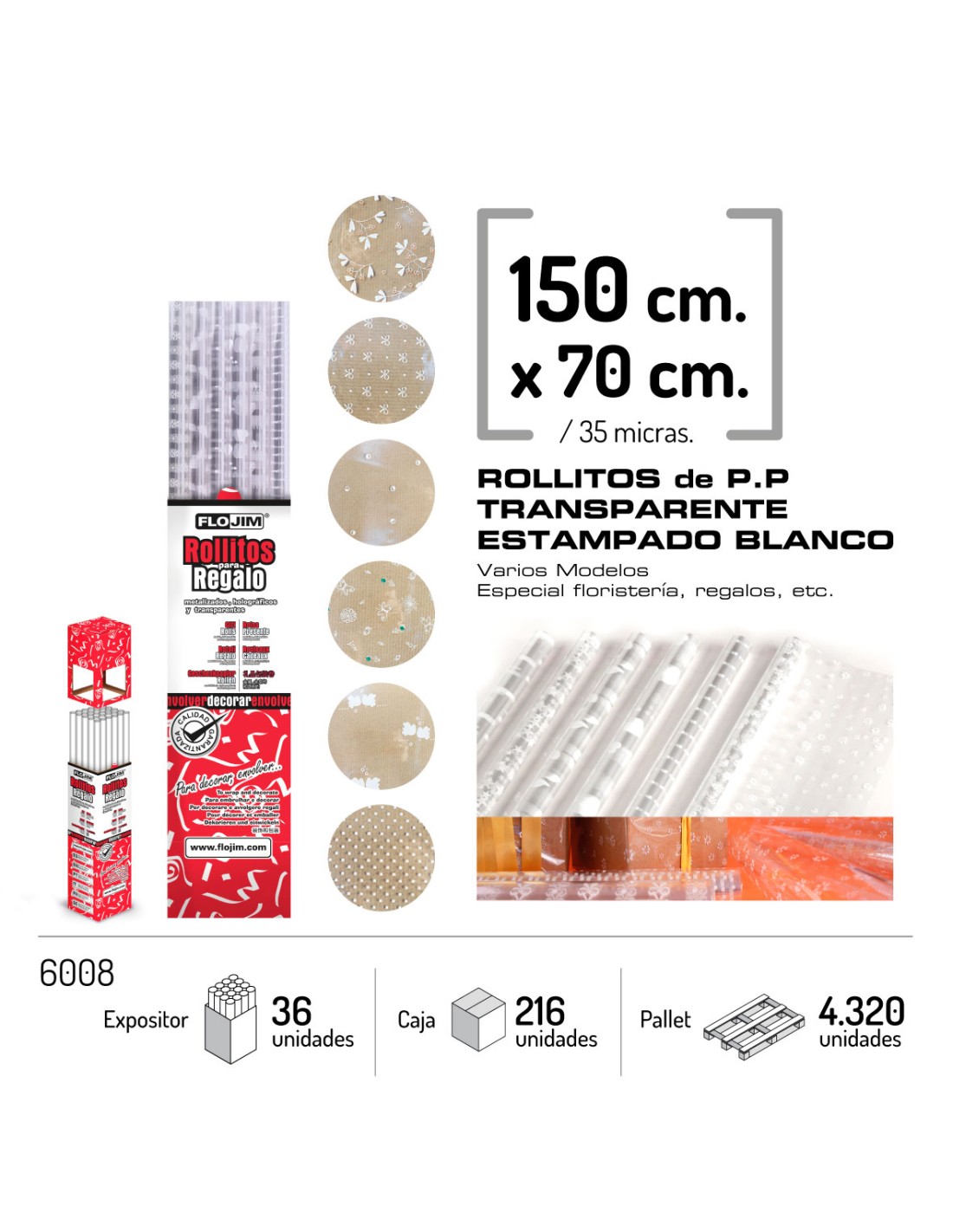 ROLLO P.P TRANSPARENTE ESTAMPADO BLANCO 150X70 CM