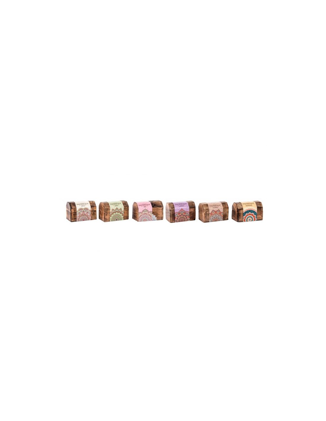 CAJA SET 10 MADERA AROMA 9X5X6 CONOS 6 SURT.