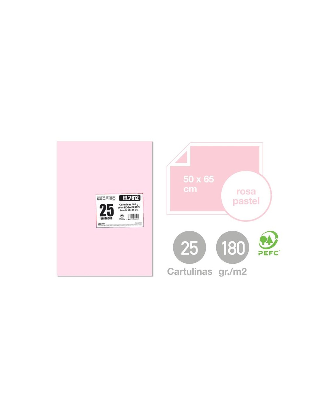 CARTULINA ROSA PASTEL 25UND 50X65CM