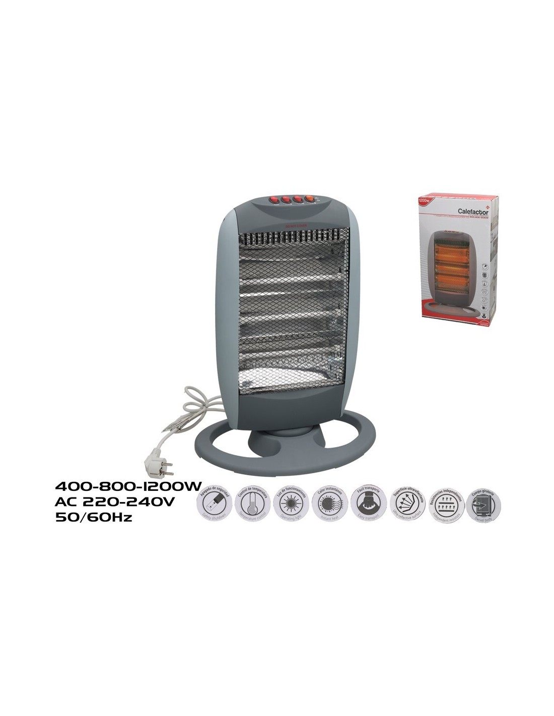 CALEFACTOR DE CUARZO 3 BARRAS 400-800-1200W GRIS