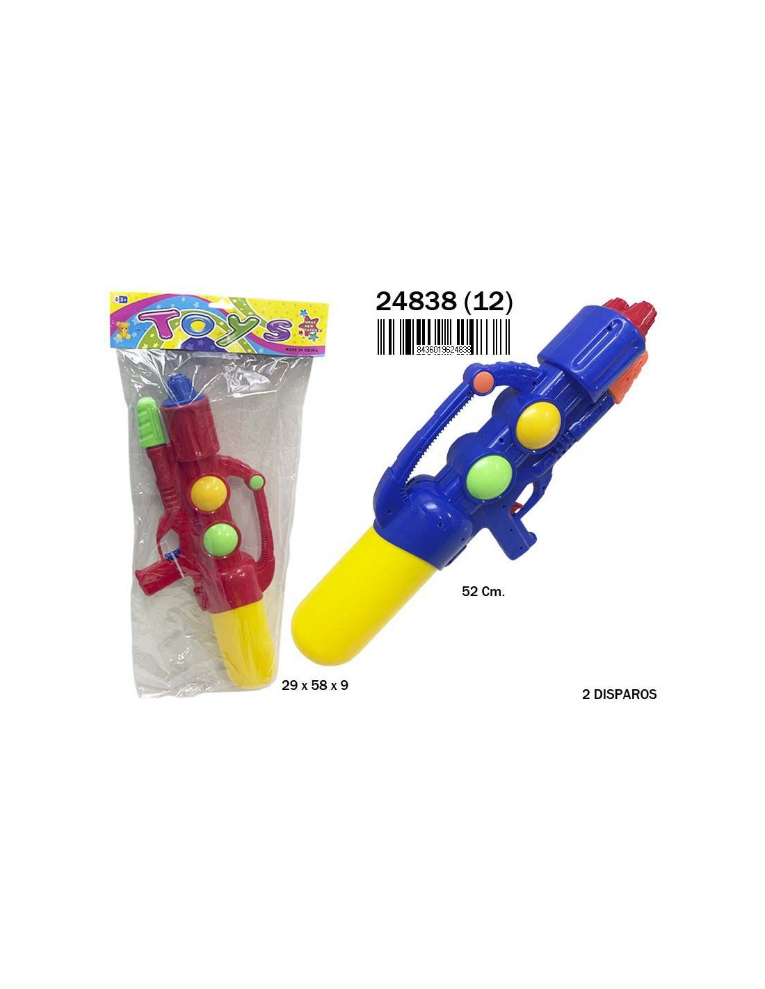 BOLSA PISTOLA AGUA AGARRE 52CM. 2 DISPAROS (12)(12)