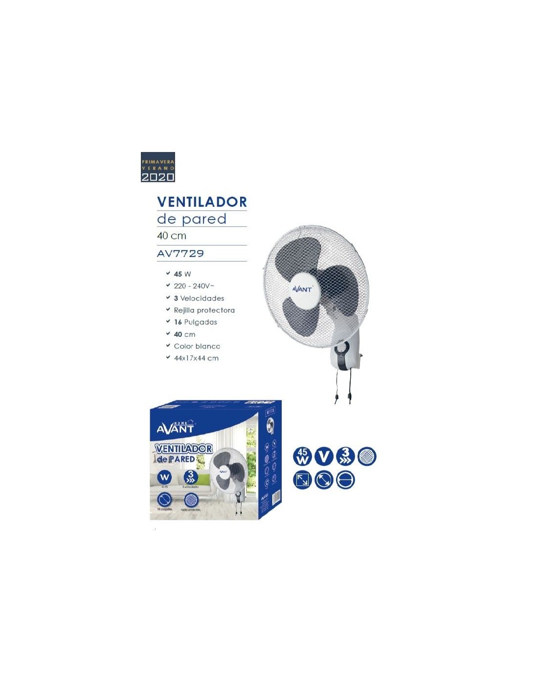 VENTILADOR AVANT DE PARED 40CM 45W