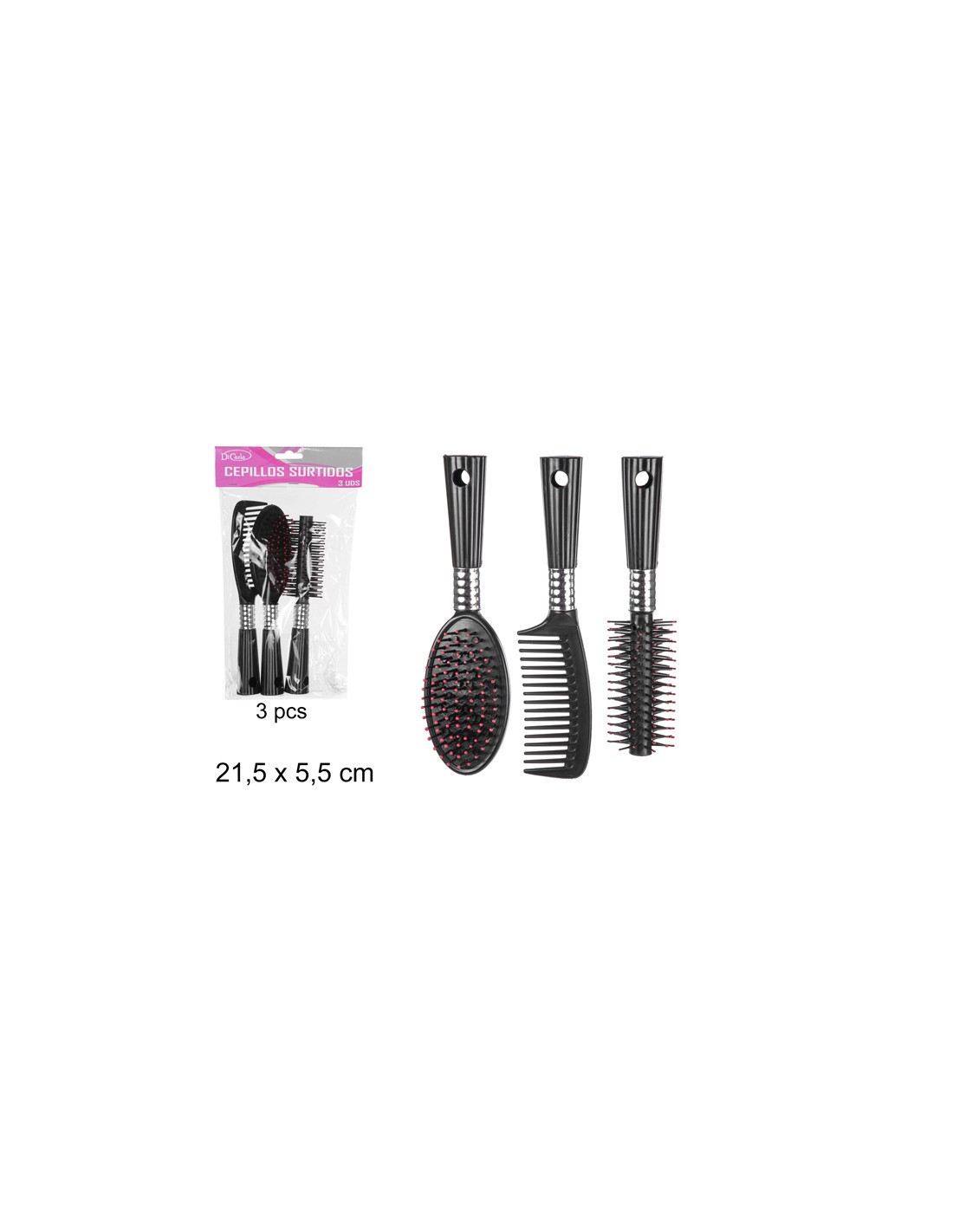 CEPILLO NEGRO 3 PIEZAS 21.5CM