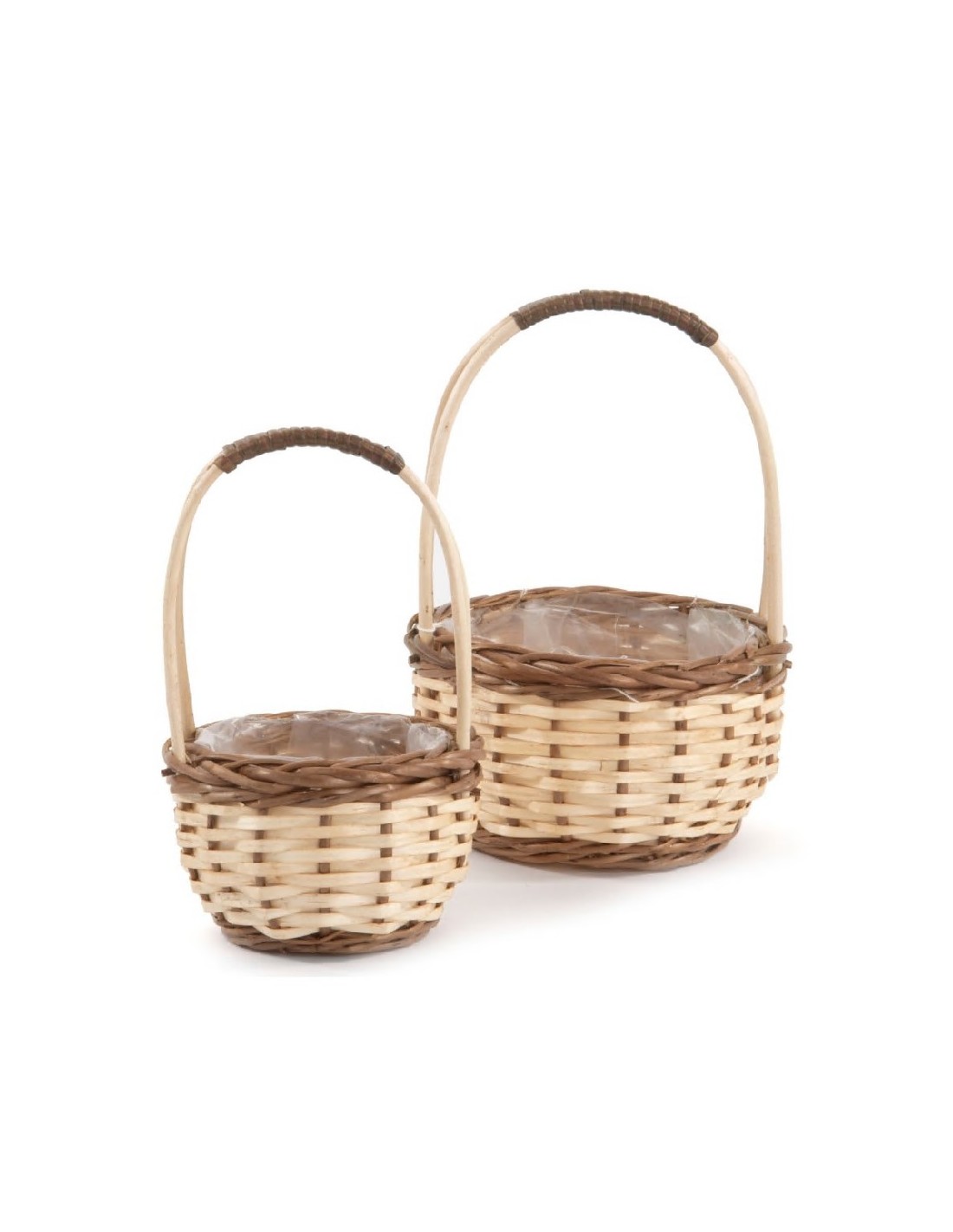 SET 2 CESTAS REDONDAS MIMBRE NATURAL BORDE OSCURO