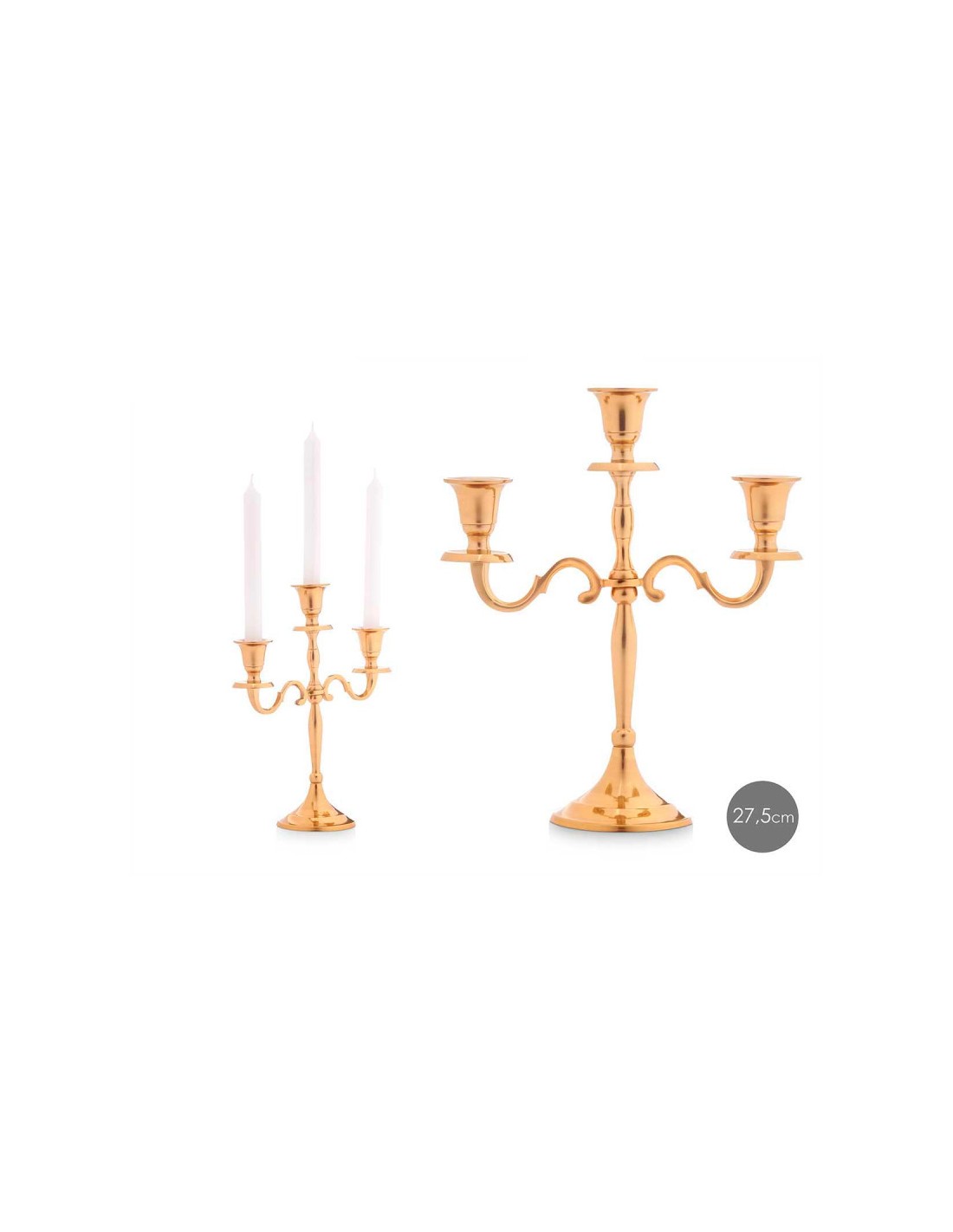 CANDELABRO 3 VELAS DORADO 28CM