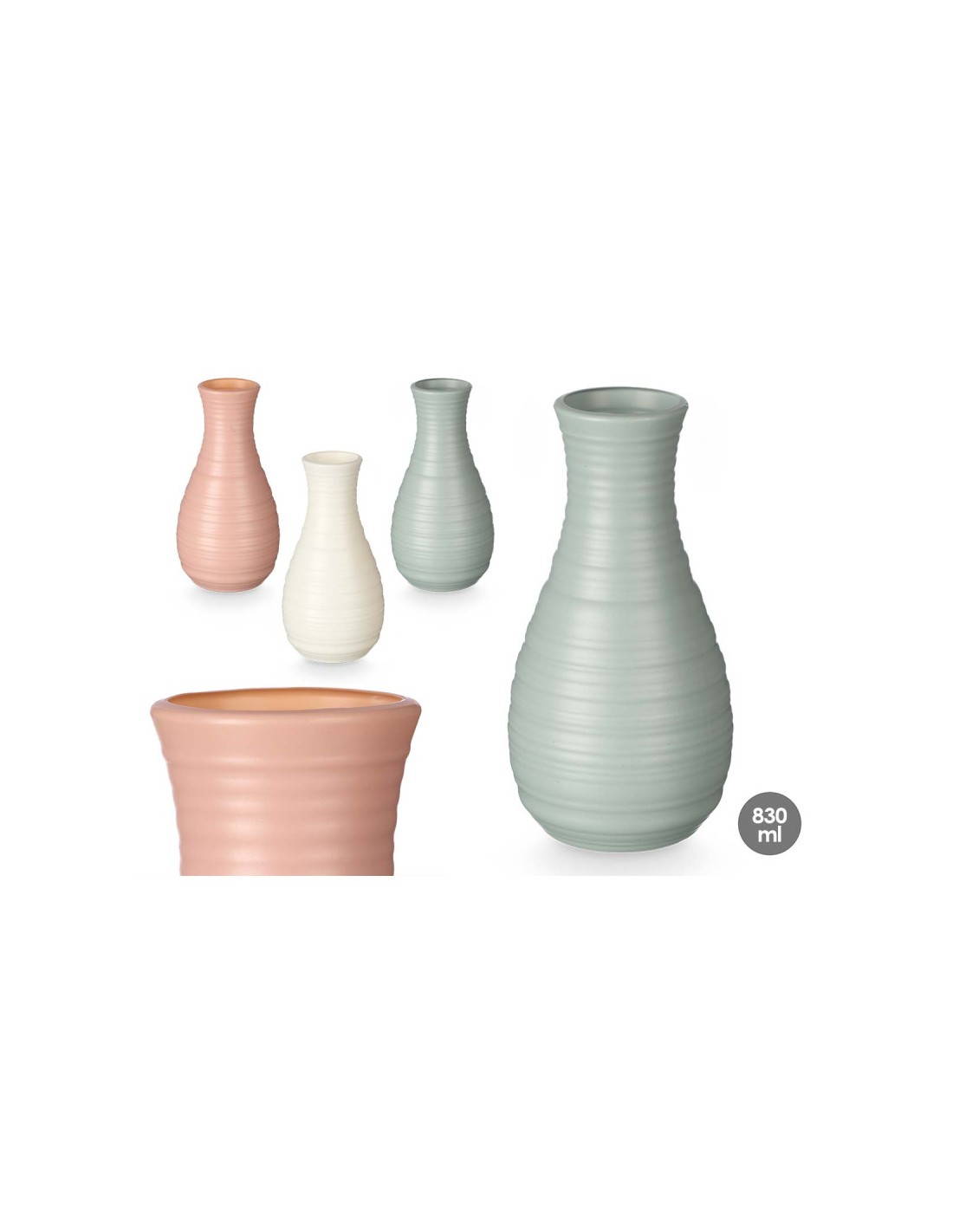 JARRON ABOMBADO RAYAS PLASTICO SURT 3 COL 20CM
