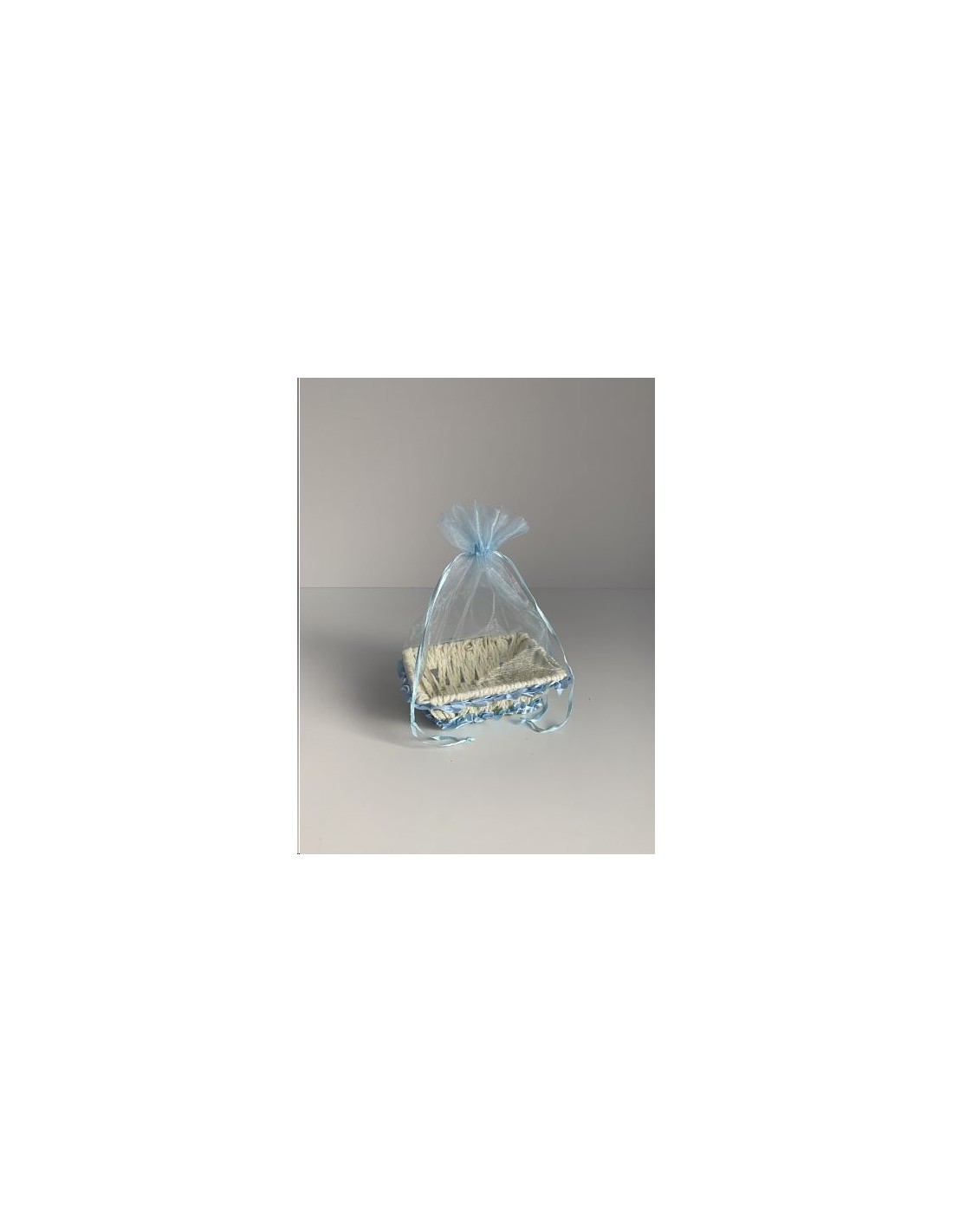 CESTA CON ORGANZA CELESTE 16X12X5.5CM