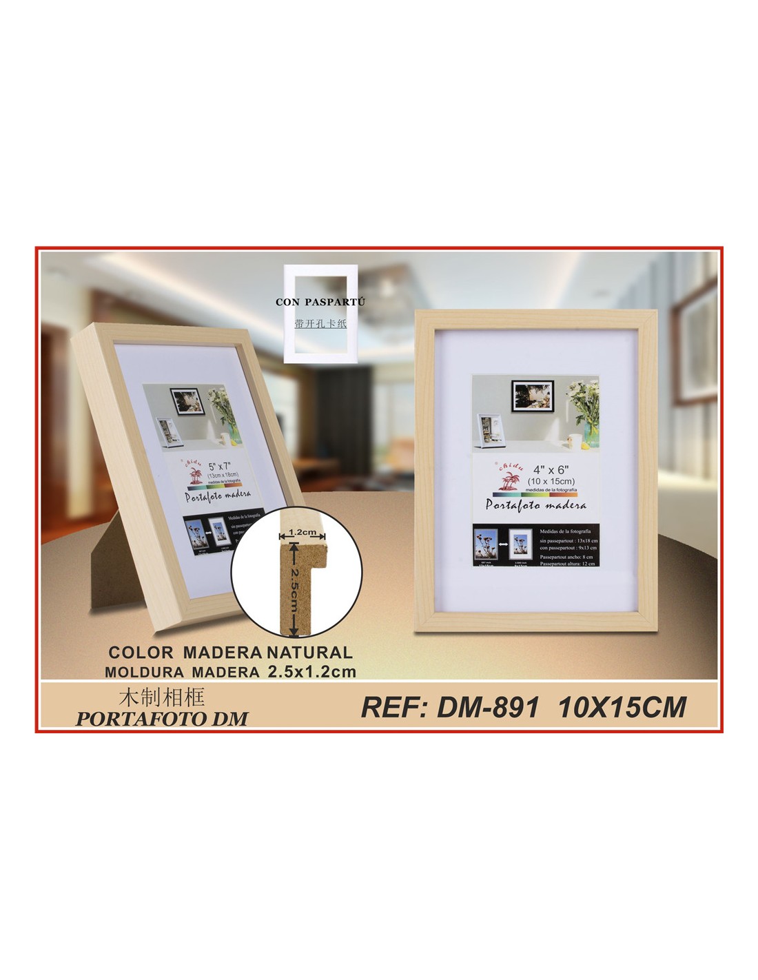 PORTAFOTO MADERA DM-891 10X15CM (12/48)