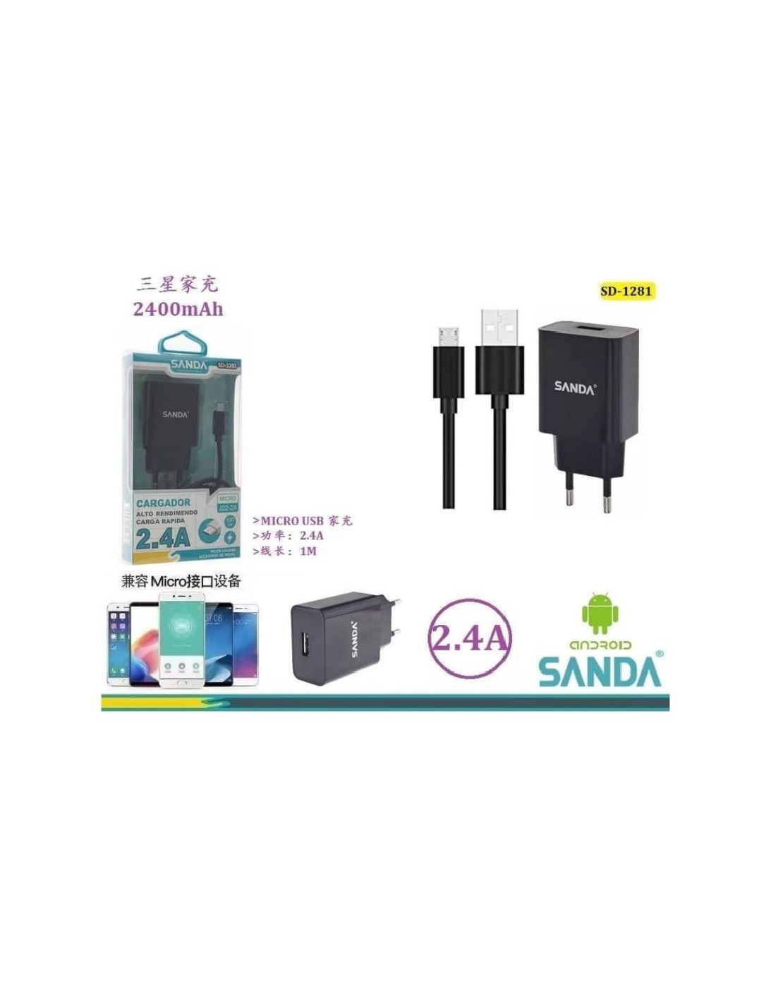 CARGADOR V8 NEGRO 2.4A
