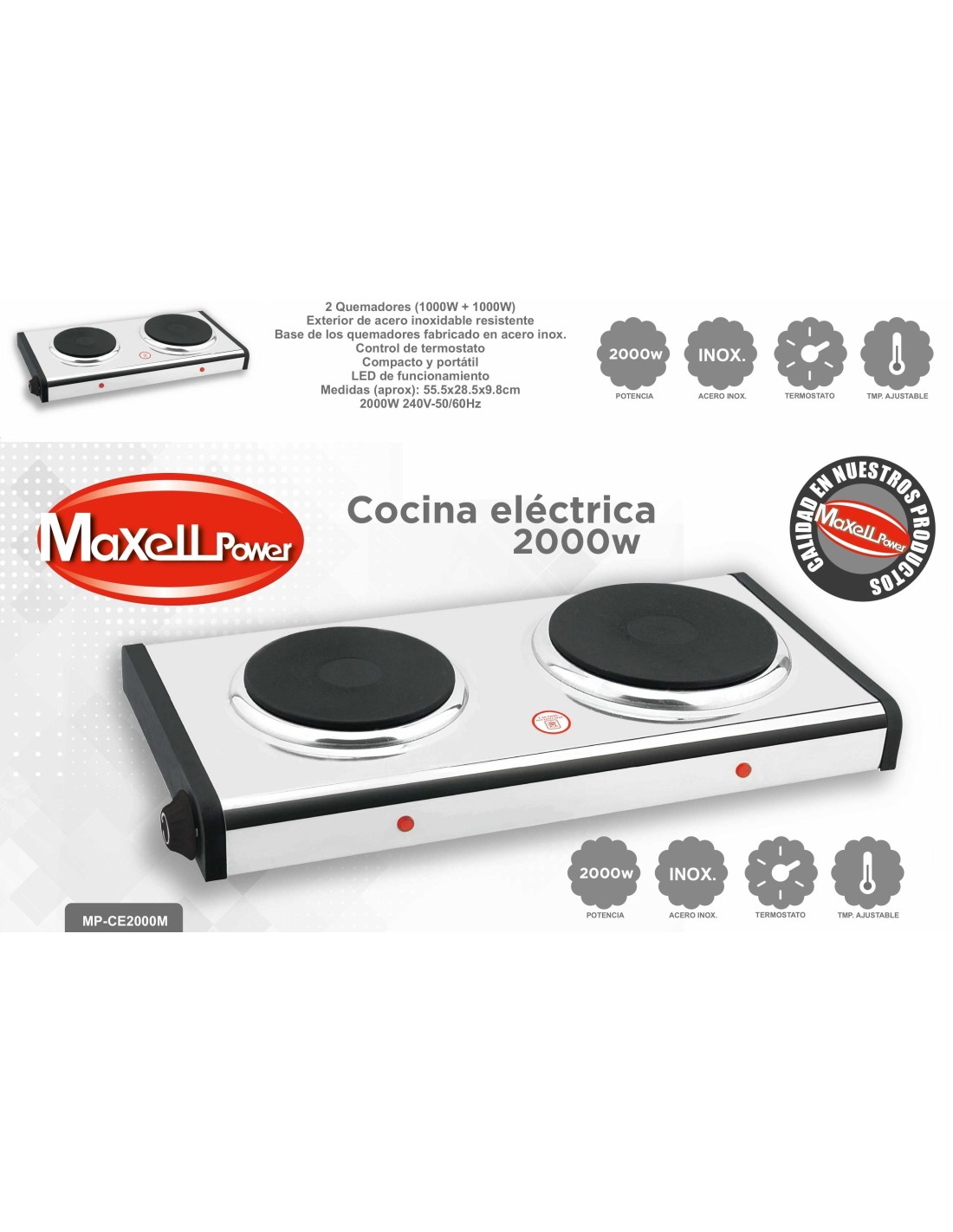 COCINA ELECTRICA 2 FUEGOS MP-CE2000