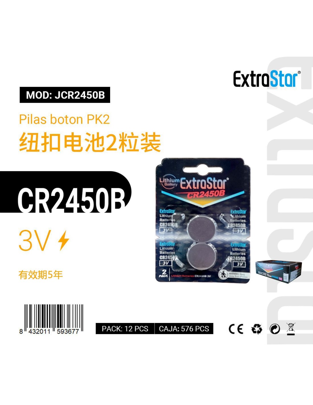 PILAS BOTON(EXTRASTAR) PK2 CR2450 3V EX:12 CJ576