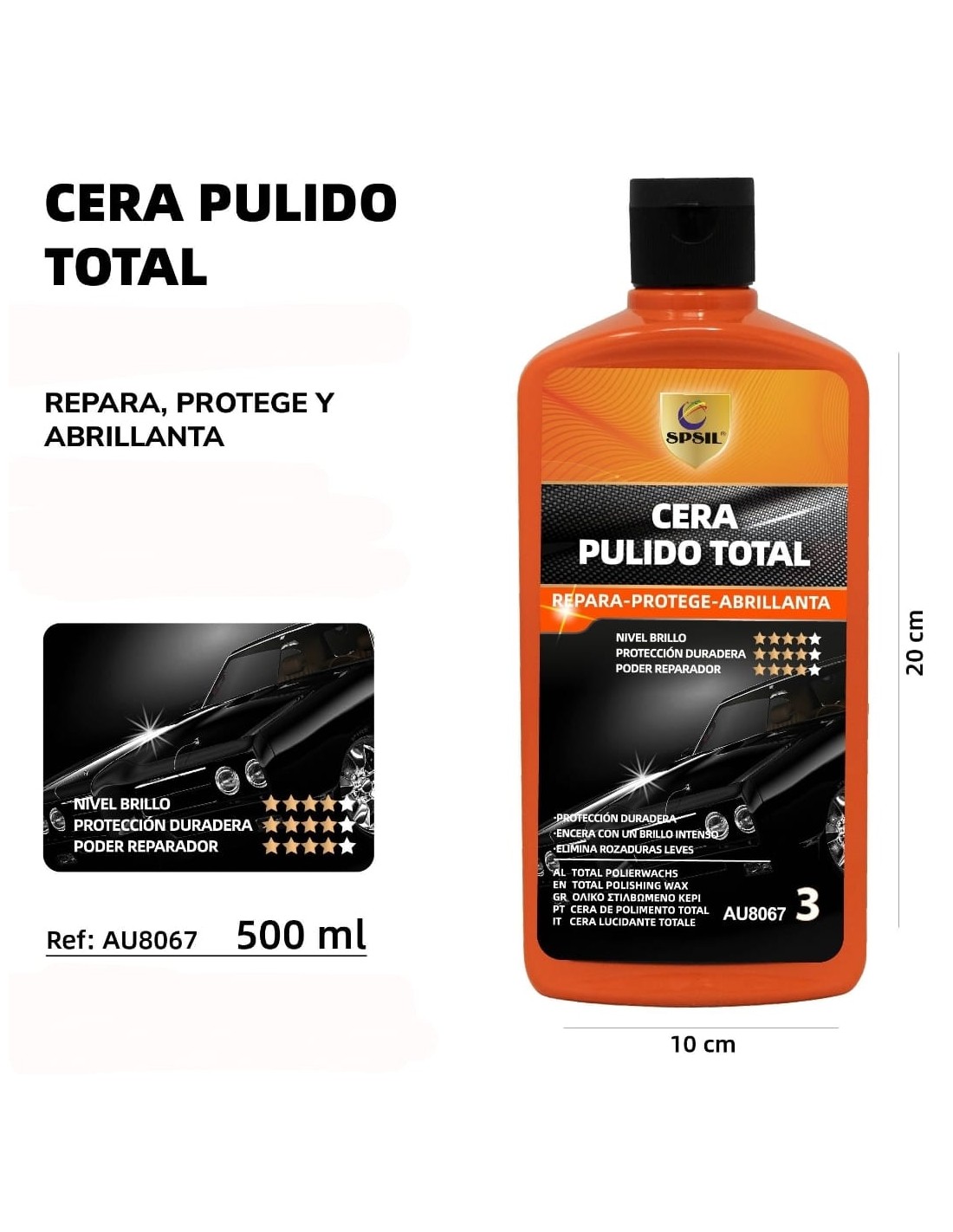 CERA RAPIDA PARA COCHE BRILLO Y PROTECCION 500ML
