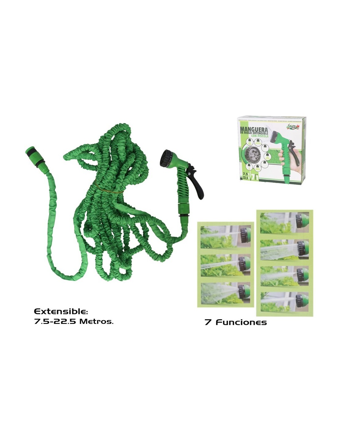 MANGUERA RIEGO EXTENSIBLE 7,5M-22,5M C/PISTOLA 7 P