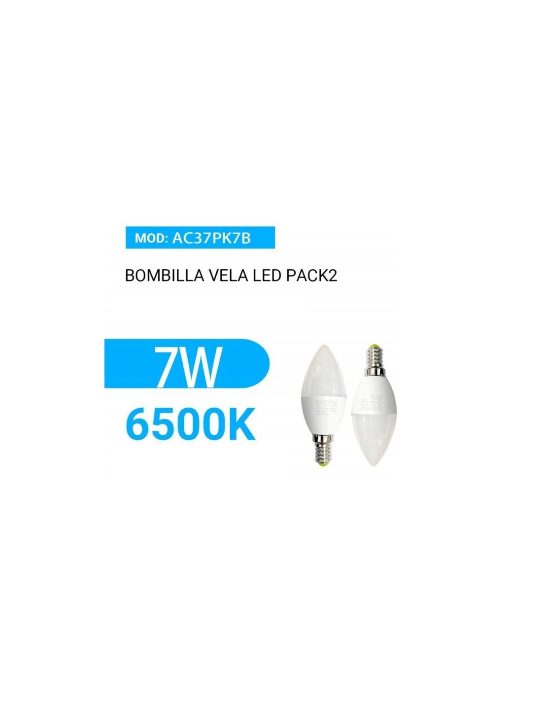 BOMBILLA LED C37 PACK2 7W E14 670LM 6500K LUZ FRIA