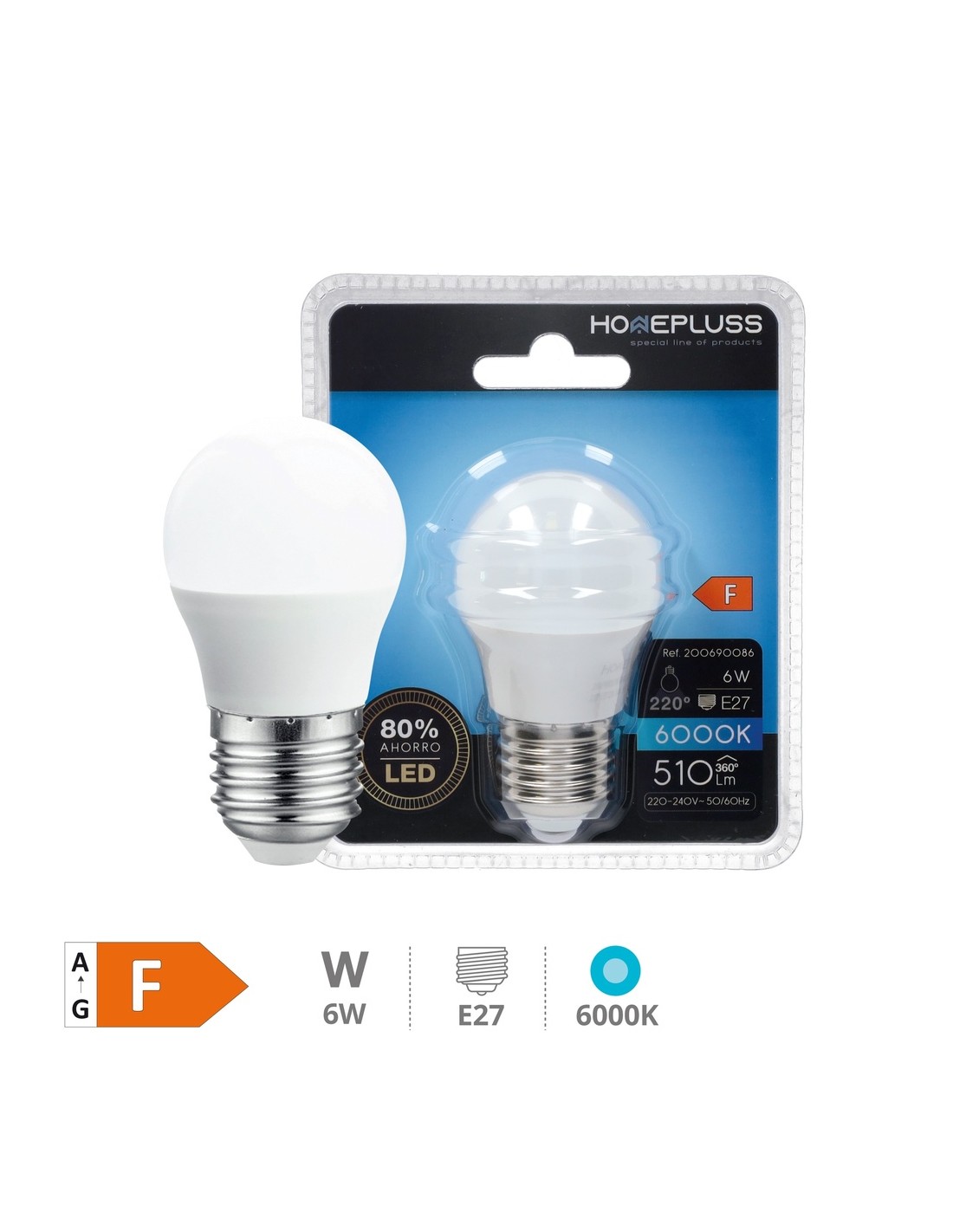 BOMBILLA LED ESFERICA 6W E27 6000K