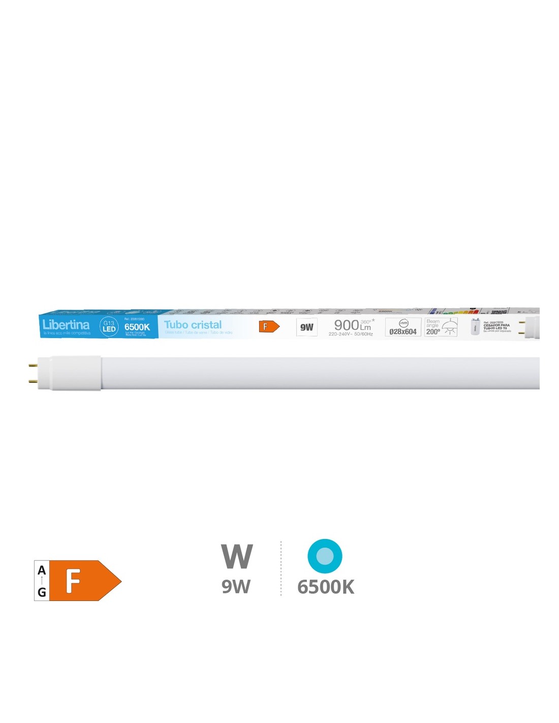 BOMBILLA TUBO 60CM 9W 6500K LED CRISTAL LIBERTINA