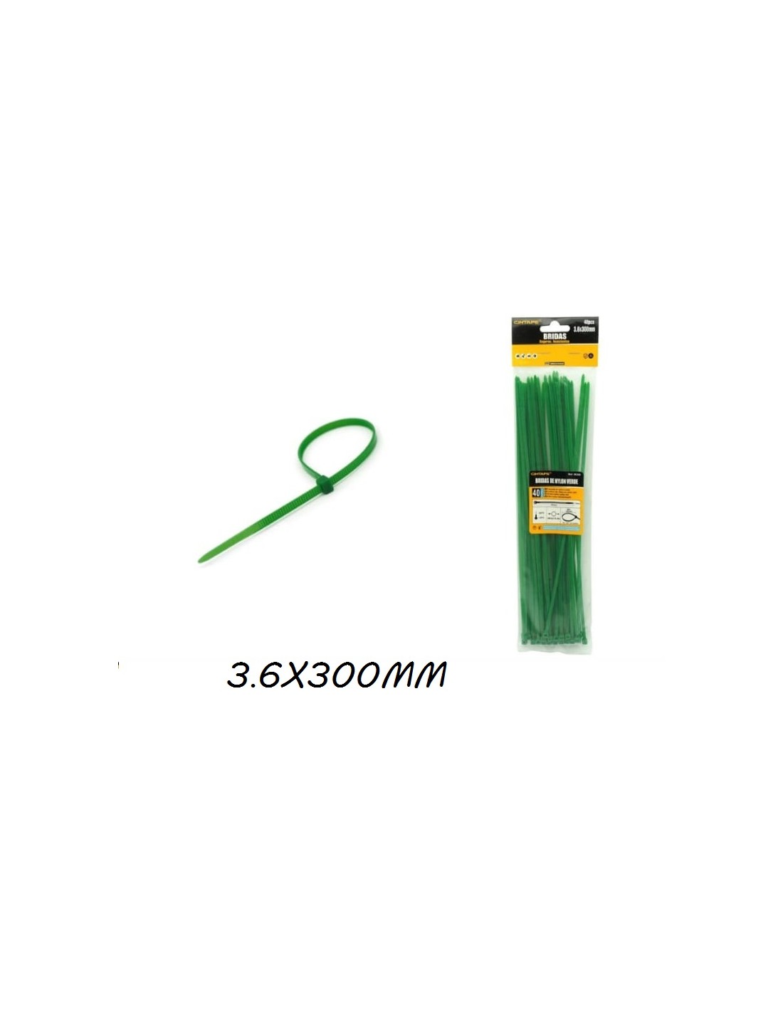 BRIDAS 3.6X300MM 40UND VERDE