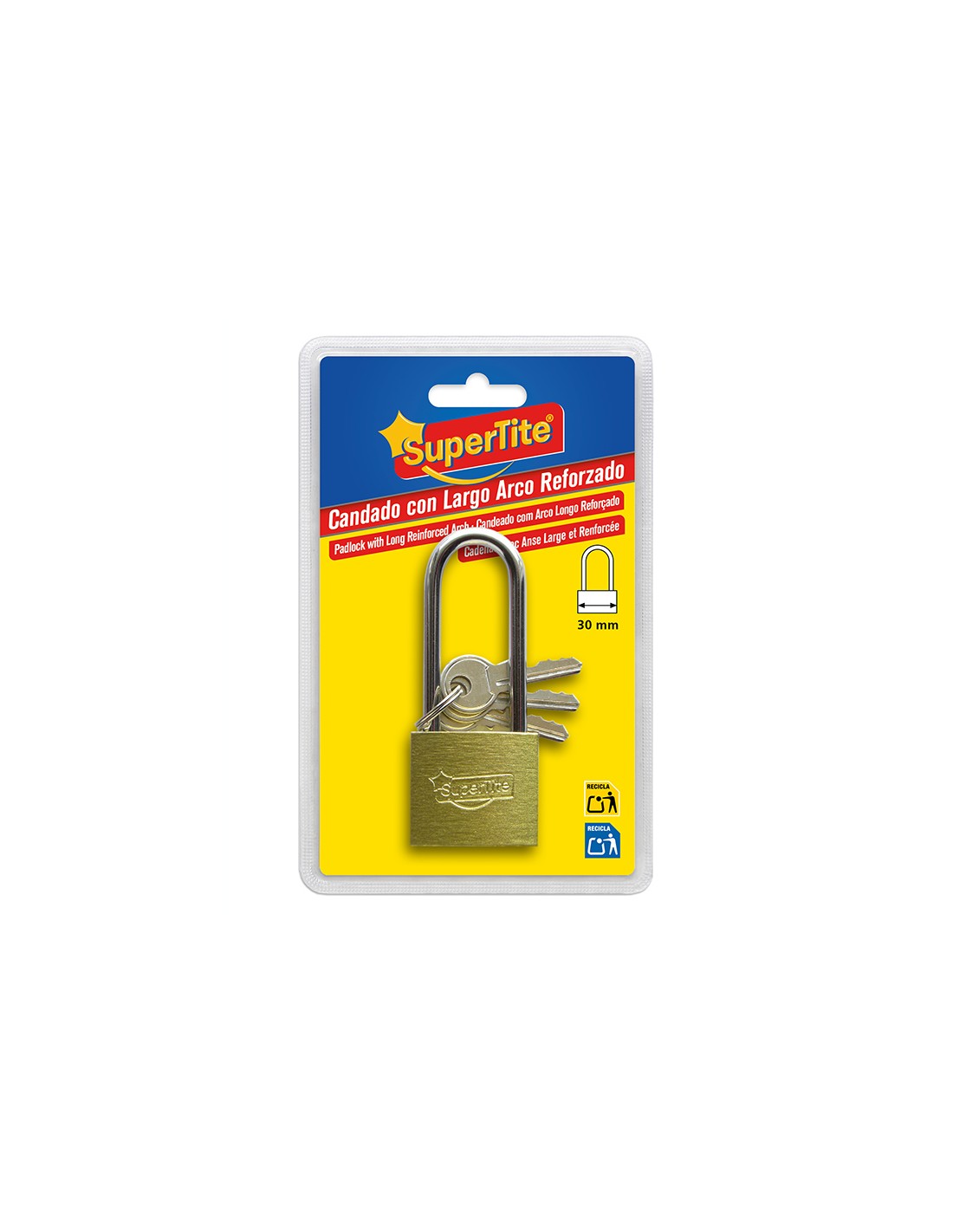 CANDADO 1X30MM ARCO LARGO REFORZADO