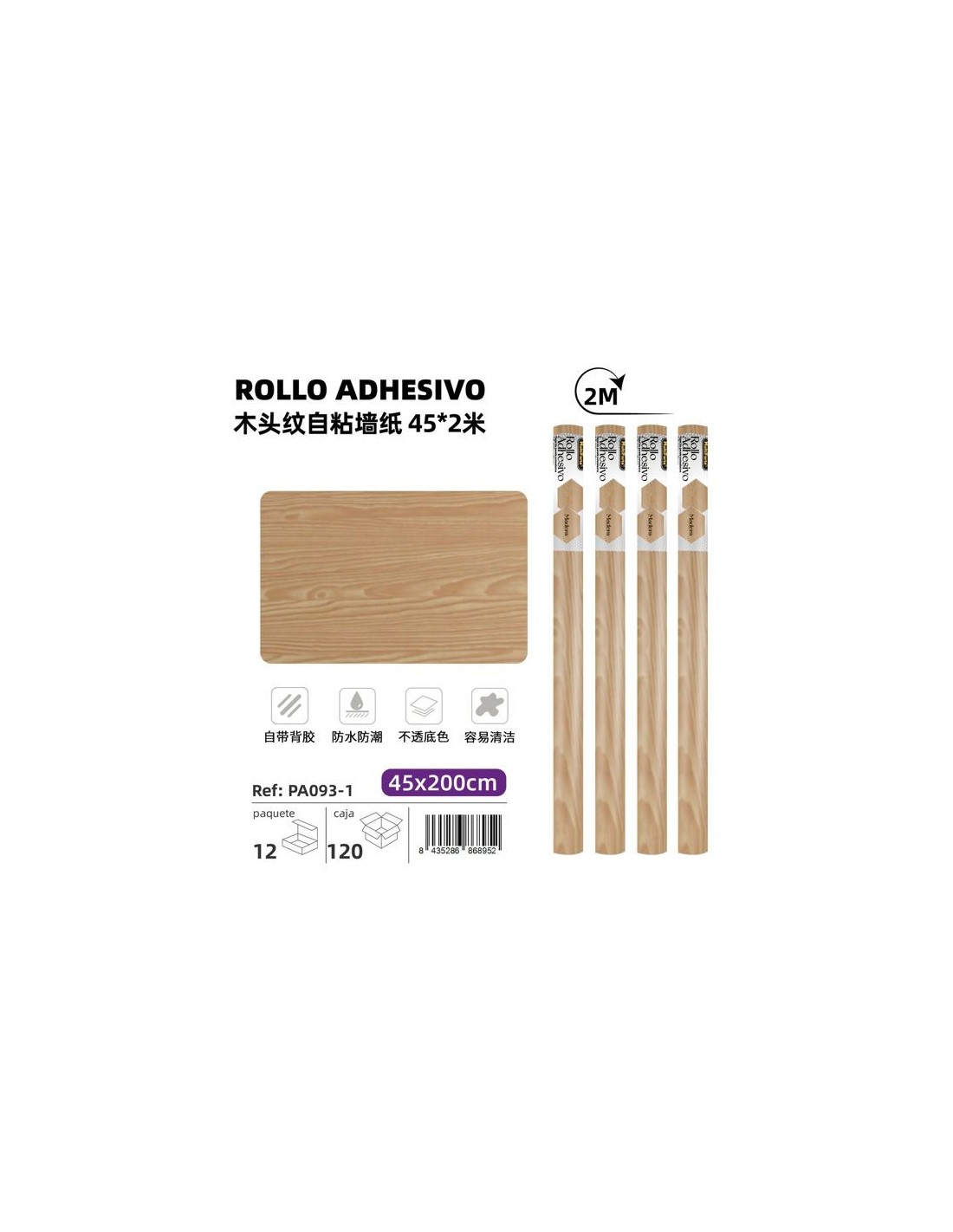 ROLLO ADHESIVO PVC MADERA 45*2M ( PA093-1)
