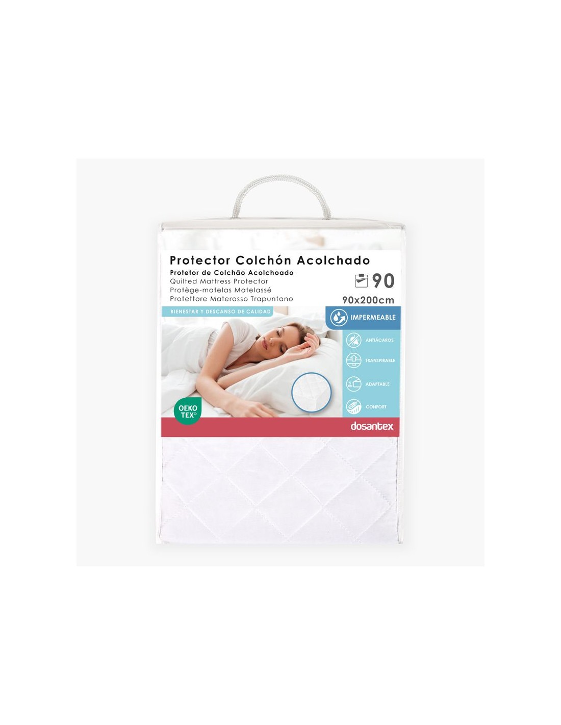 PROTECTOR 90CM COLCHON ACOLCHADO IMPERMEABLE BLANCO