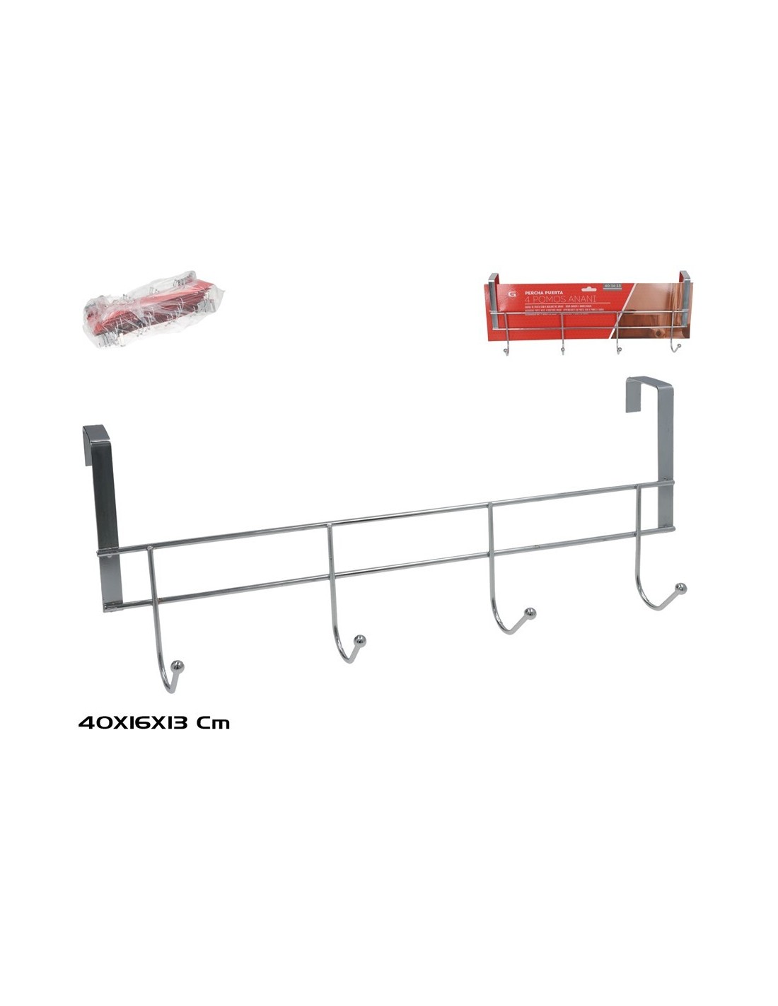 PERCHA PUERTA 4 POMOS ANAHI 40,2X16X13CM