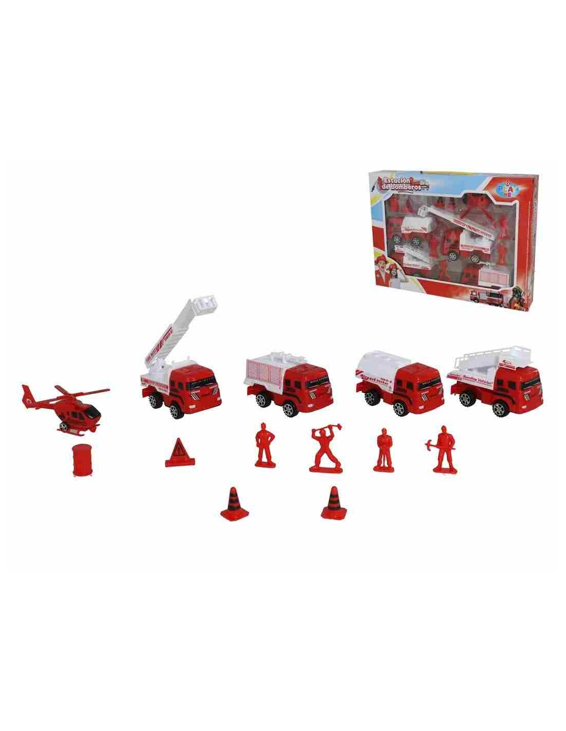 SET VEHICULOS DE BOMBEROS CON 13 PCS 39X29X6 CM