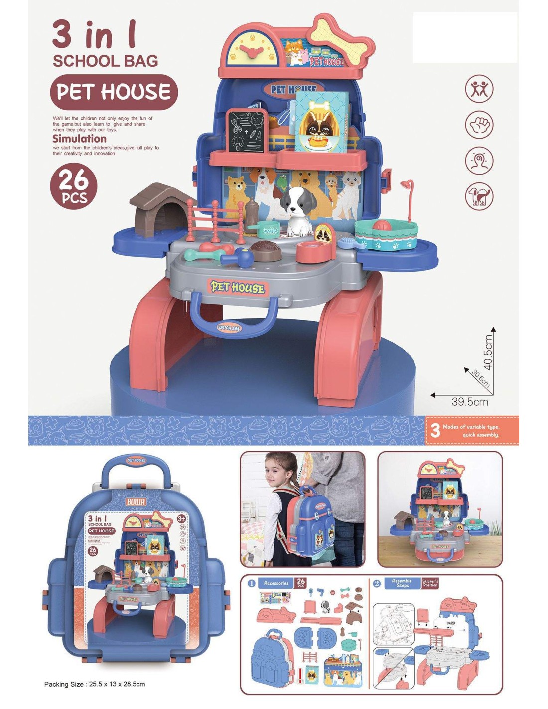 MOCHILA MASCOTAS 26 PCS MORADO
