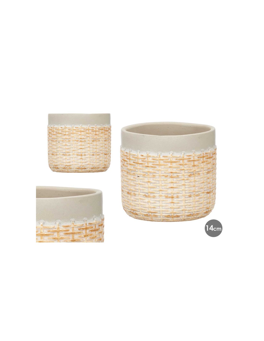 MACETA CEMENTO EFECTO RATAN 14CM GRIS