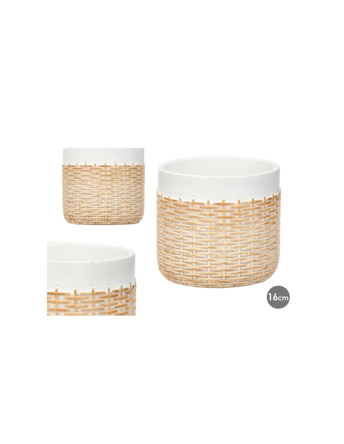 MACETA CEMENTO EFECTO RATAN 16CM BLANCO