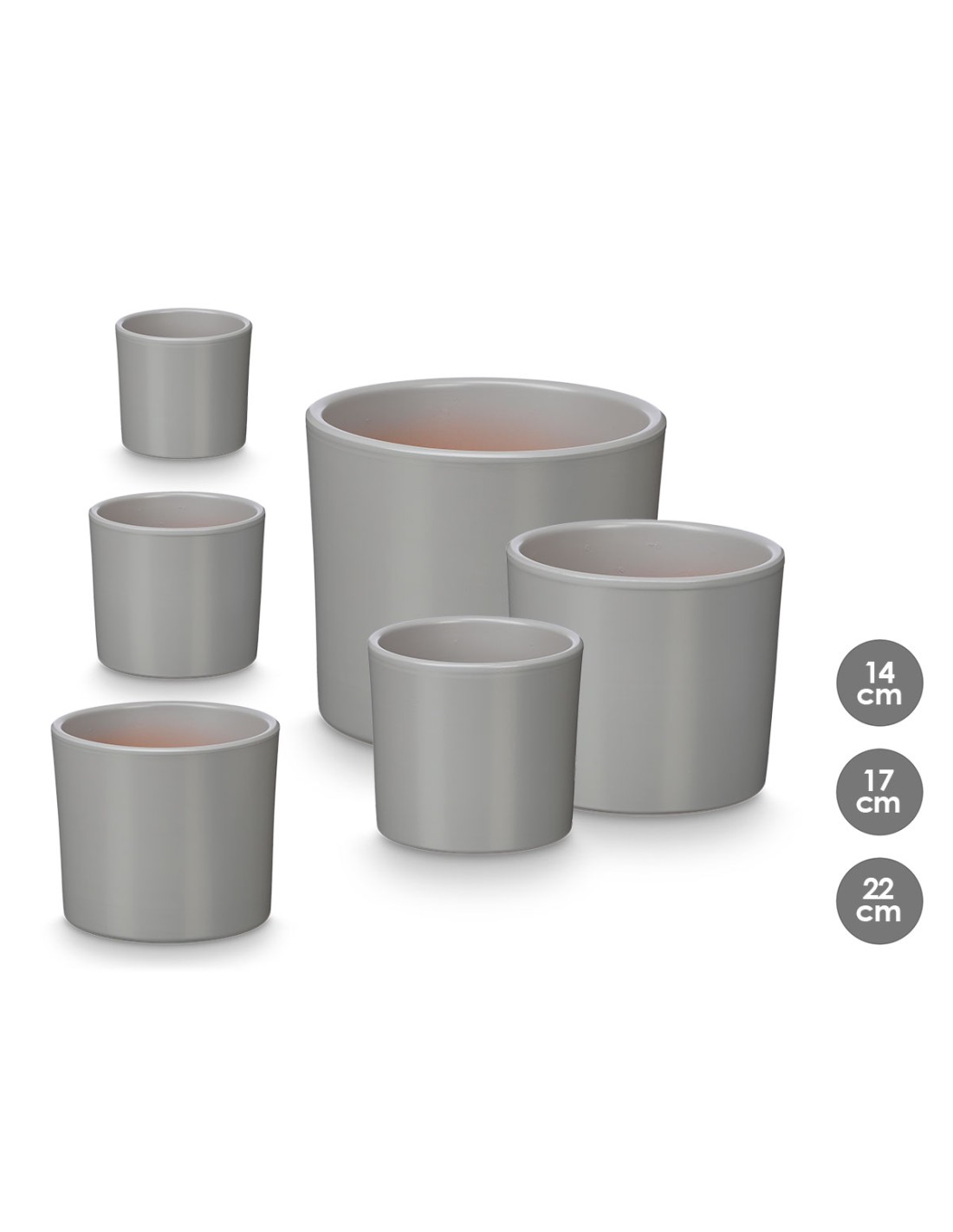 SET 3 MACETAS CILINDRO 14 17 22CM GRIS MATE