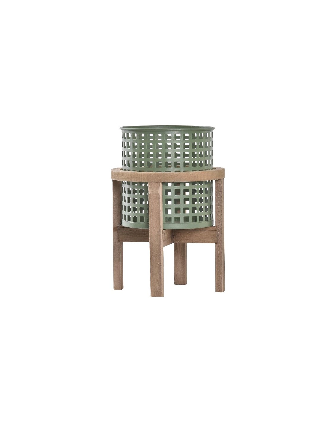MACETERO METAL MADERA 15X15X22.5 VERDE