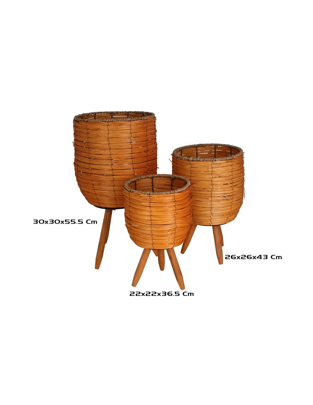 SET 3 MACETEROS C/PATAS LUR 30X30X55,5CM NATURAL