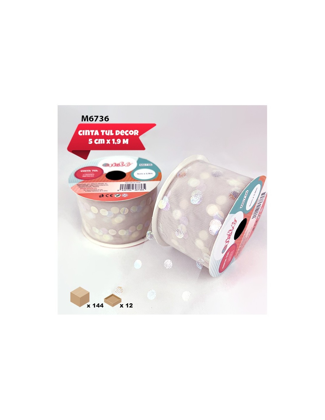 CINTA TUL LUNARES IMPRESO 5CM X 1.9M