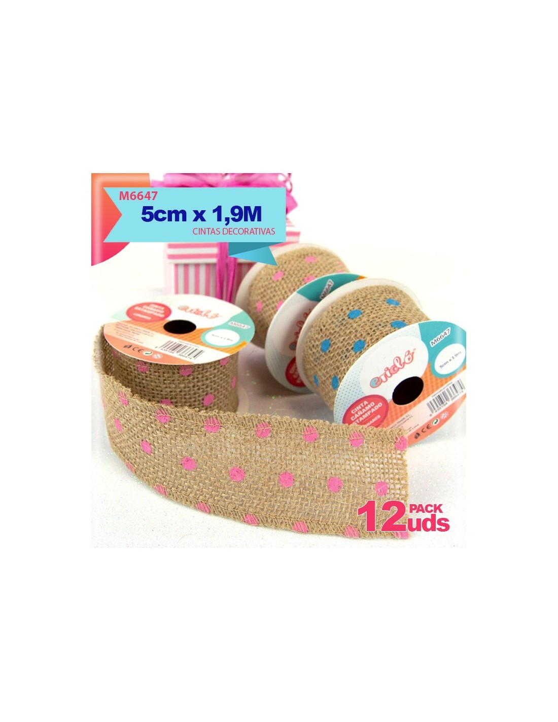 CINTA DE CAÑAMO ESTAMPADO LUNARES 5CM X 1.9M