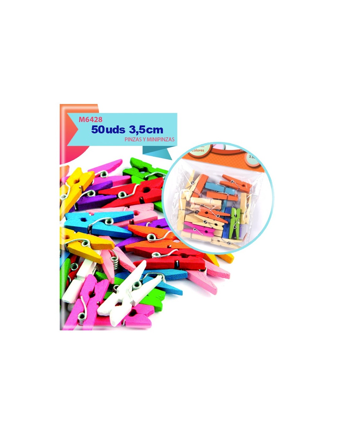 PINCITAS DE MADERA DE COLORES 3.5CM PACK AHORRO