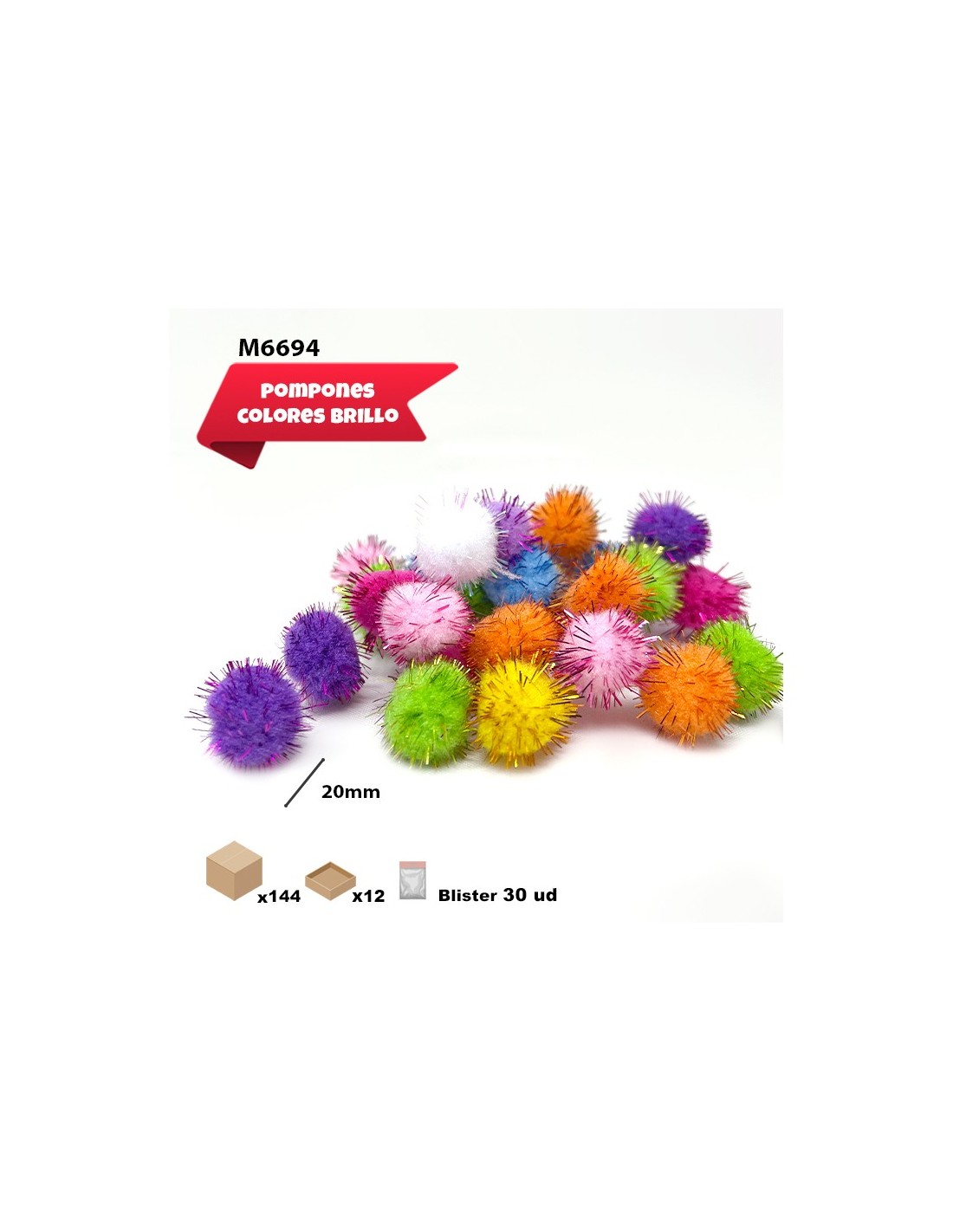 POMPONES BRILLANTES DE COLORES 20MM 30PCS