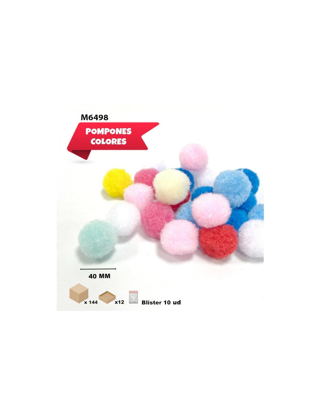POMPONES DE COLORES 40MM 10UD