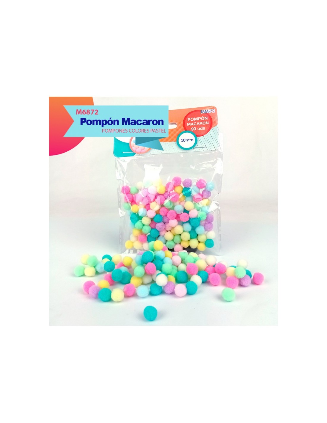 POMPONES MACARON 10MM 90UDS
