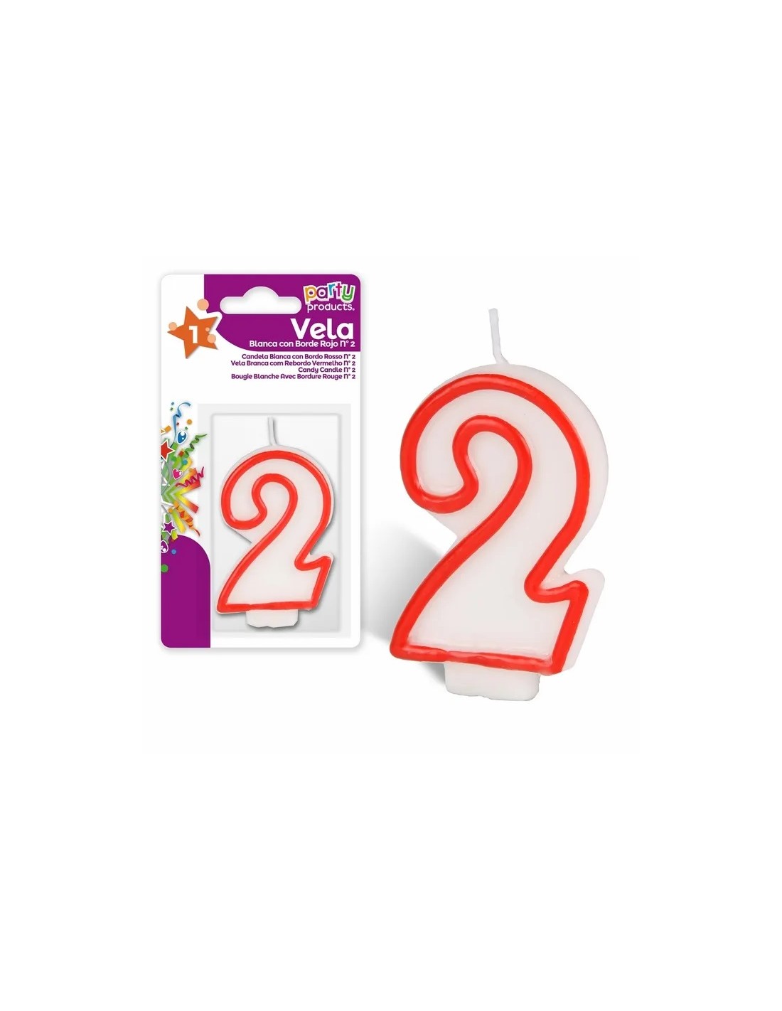 VELA Nº 2 BLANCA CON BORDE ROJO