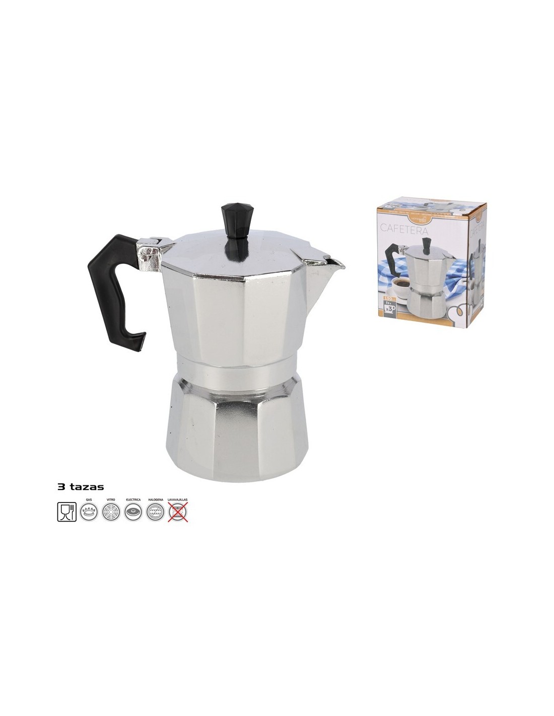 CAFETERA ALUMINIO 3 TAZAS 150 ML