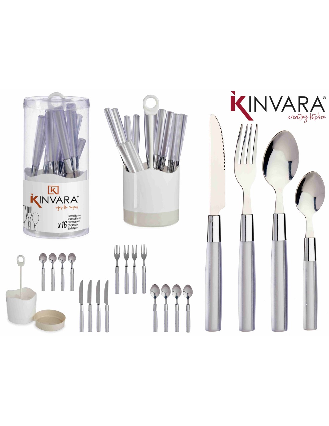 CUBIERTOS 16 UND GRIS ACERO INOXIDABLE MANGO