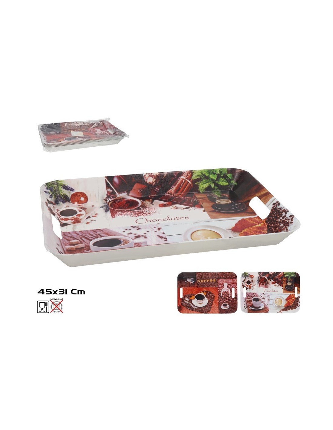 BANDEJA COFFEE DESIGN 45X31CM 2 SURT