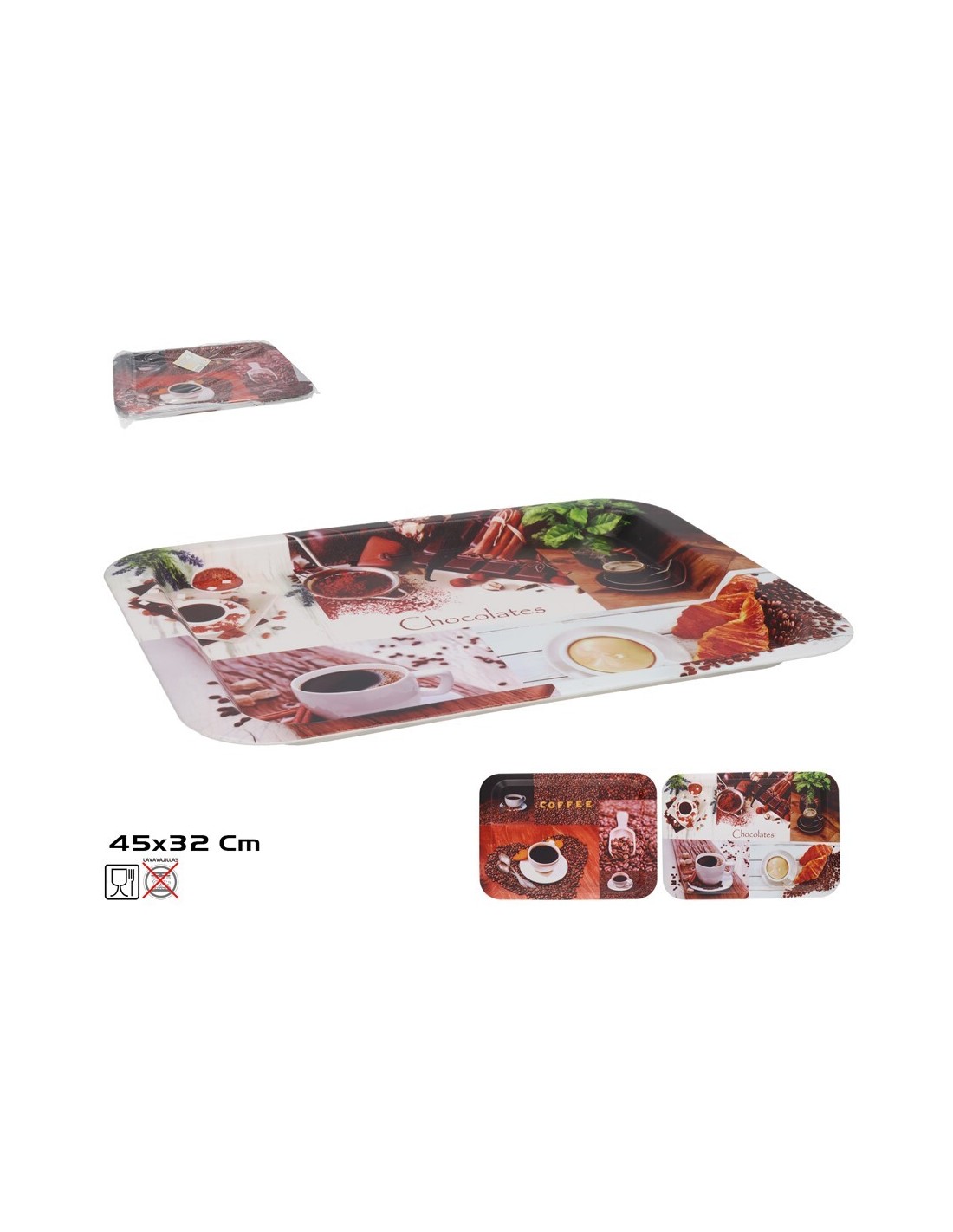BANDEJA COFFEE DESIGN 45X32CM 2 SURT